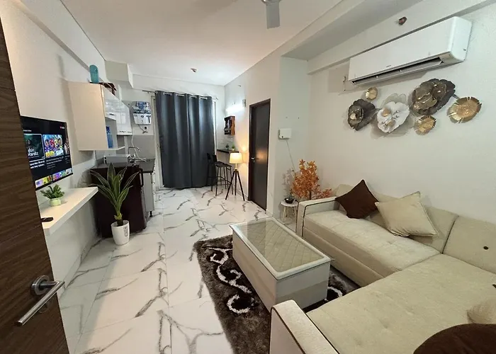 The Platinum N Stay 1 Bhk Gurgaon apartment is nearly 25 minutes' walk from Sheetla Mata Mandir Temple and offers a patio with a swimming pool. Located 4.9 km from Apollo Tyres Ltd, the apartment is within reach of Gurugram Railway bus stop.